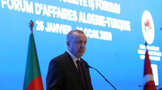 Cumhurba?kan? Erdo?an, Türkiye-Cezayir ?? Forumu'nda yapt??? konu?mada, Türkiye’nin Afrika ülkeleriyle toplam ticaret hacminin son 17 y?lda yüzde 381 art??la 26 milyar dolara ula?t???n? aç?klayarak, “Önümüzdeki dönemde k?ta ile i? birli?imizi daha da ilerletece?iz. El ele, omuz omuza, gönül gönüle vererek ticaretimizi 50 milyar dolar seviyesine ta??yaca??z” dedi.
