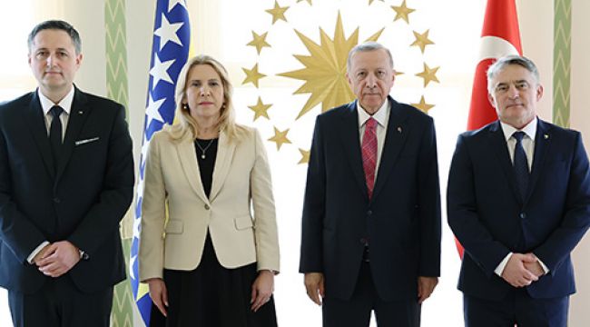 Cumhurba?kan? Recep Tayyip Erdo?an, Bosna Hersek Devlet Ba?kanl??? Konseyinin Bo?nak yesi Denis Becirovic, H?rvat yesi Zeljko Komsic ve S?rp yesi Zeljka Cvijanovic ile Vahdettin K?k'nde bir araya geldi.