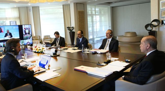 Video konferans yöntemiyle gerçekle?tirilen zirve esnas?nda, Cumhurba?kan? Erdo?an’a, D??i?leri Bakan? Mevlüt Çavu?o?lu da e?lik etti.