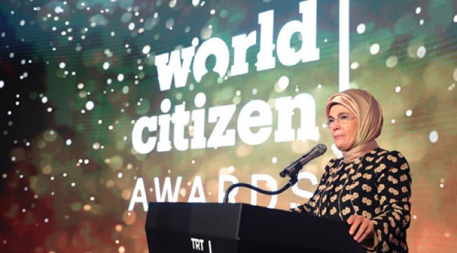 Emine Erdo?an, TRT bünyesinde 2017 y?l?nda kurulan ve dünyada pozitif de?i?ime ilham olmak slogan?yla yola ç?kan sosyal sorumluluk giri?imi TRT World Citizen taraf?ndan Hasköy ?plik Fabrikas?nda düzenlenen ödül töreninde bir konu?ma yapt?.